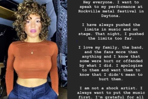 유리스타는 "데이토나에서 열리는 록빌 메탈 페스티벌에서 제 공연에 대해 이야기하고 싶다"며 "나는 항상 음악과 무대에서 한계를 뛰어넘는데, 그날 밤 너무했었다"고 말했다.
