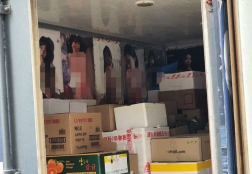 한편 지난 12일 온라인 커뮤니티에는 배달 중인 택배 차량 내부에 속옷, 수영복 차림을 한 여성들의 대형 포스터가 빼곡하게 붙어 있는 사진이 올라왔다.