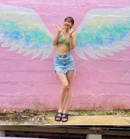 공개된 사진 속 채은정은 사이판 여행 중 화려한 비키니 의상을 입은 채 밝고 행복한 표정으로 인증샷을 남기고 있는 모습이다.