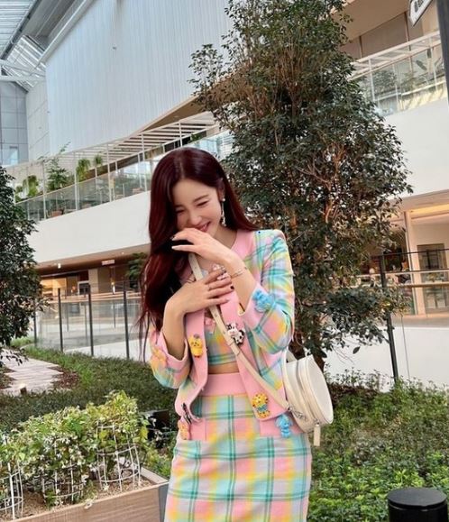 18일 전효성은 자신의 사회관계망서비스(SNS) 계정에 "핑크 들어간 체크 사랑"이라는 글과 함께 영상과 사진 여러 장을 게재했다.