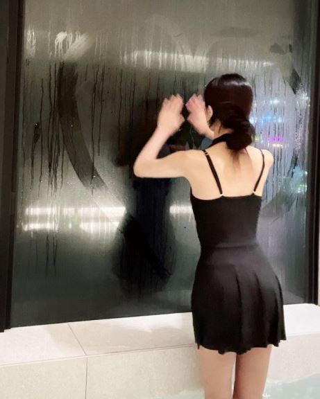 사진에는 리지가 동성 친구와 함께 광안리 풀빌라에서 놀고 있는 모습이 담겼다. 그는 히노끼 탕에서 검은색 원피스 수영복을 입고 아찔한 뒤태를 과시했다.