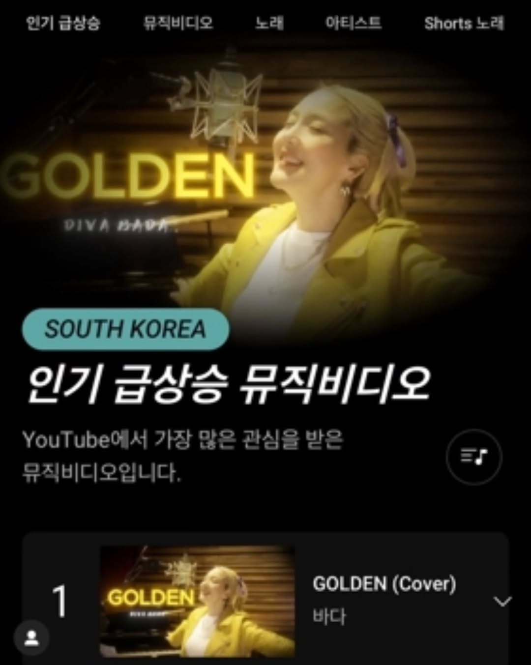 사진 속 바다는 헤드폰을 낀 채 하트를 만들며 환한 미소를 지어 보였다. 영상 속 커버곡은 유튜브 인기 급상승 뮤직비디오 1위에 오르며 팬들의 폭발적인 호응을 받고 있다.
