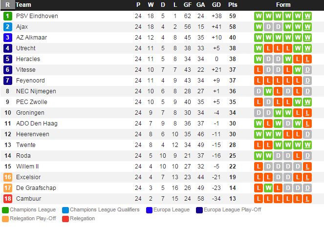 PSV 는 지난 라운드 헤라쿨레스 전에서 2-0 승리를 거두고 주중 AT 마드리드 와의 경기에서 0-0 무승부를 거두었다. 루크 데용이 챔스 경기에서 결장하였기에 체력적인 안배가 되었고 코쿠 감독의 전술과 선수장악력이 시즌을 지날수록 더욱 좋은 모습이다. 덴하그는 지난 라운드 즈볼레 전에서 0-2 패배를 당했다. 덴하그는 듀플란-얀센 등 몇몇 주전 선수들의 컨디션에 경기 내용에 영향을 받기에 핵심 선수들이 좋은 활약을 펼쳐줘야만 한다.