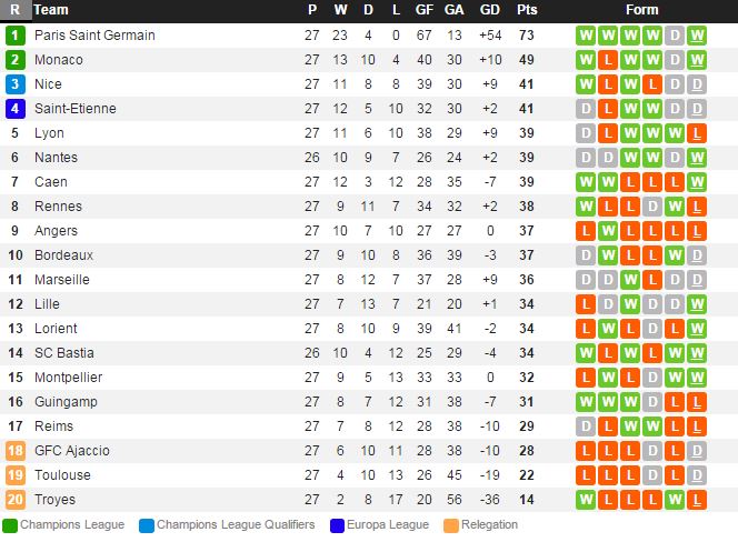 낭트는 지난 라운드 로리앙전에서 2-1 승리를 거두고 최근 리그 12경기 연속 무패행진을 거듭하고 있다. 팀의 확실한 공격에이스는 없지만 짜임새 있는 조직력과 전술로 매경기 좋은 경기력을 보여주고 있는 모습이다. 모나코도 지난 라운드 트로와 전에서 한수 위 경기력을 보여주며 3-1 승리를 거두고 리그 13경기 연속 무패행진을 거듭하고 있다. 올시즌 원정 경기에서도 6승 5무 2패를 거둘정도로 원정에서도 강한 모습을 보여주는 팀이다.