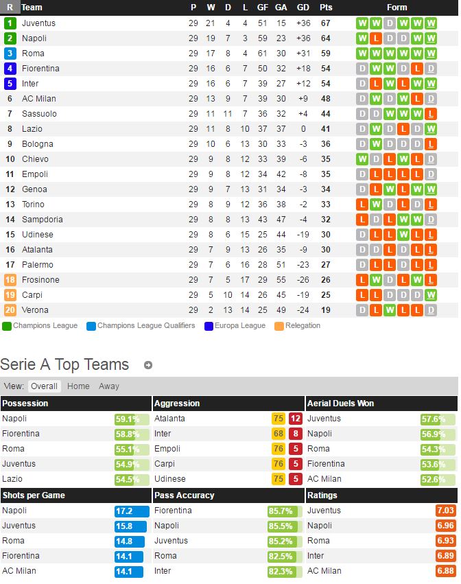 로마는 지난 라운드 우디네세 원정 경기에서 2-1 승리를 거두면서 최근 리그 8연승을 거두며 리그 3위를 지키고 있다. 스팔레티 감독 부임 이후 완벽한 공수 밸런스를 통한 살라-피야니치 등 2선 자원들의 활약도 역시 대단히 뛰어나다. 인테르는 지난 라운드 볼로냐 전에서 2-1 승리를 거두면서 리그 5위를 유지하고 있다. 최근 2경기에서 올시즌 초반 좋았던 경기력을 되찾아 가는 모양새고 이카르디 같은 주축 선수들의 컨디션도 나쁘지 않은 모습이다.