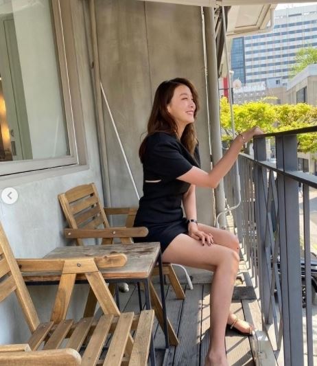 사진 속 유인영은 라인이 훤히 드러나는 원피스를 입은 채 한 카페 의자에 앉아 카메라를 향해 포즈를 취하고 있다.