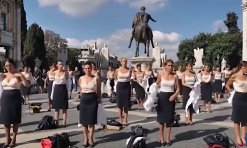 이탈리아 로마에서 비행기 승무원들이 단체로 옷을 벗는 일이 발생했다. 해외 매체들도 이를 비중 있게 보도했다. 해외 매체의 보도에 따르면 이탈리아 국영 항공사인 알리탈리아에 소속됐던 승무원 50여명이 수도 로마 중심주 캄피돌리오 광장에 모여서 시위를 벌였다.