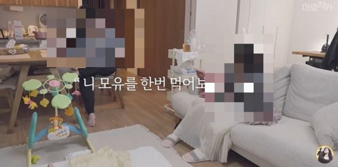 그러자 아내가 "아기가 먹을 게 줄어든다"고 설명하자, 남편은 "공짜로 나오는 거잖아. 짜면 나오는 거잖아. 가슴이 양쪽이니까 2인분 나오는 거 아니냐"고 떼를 썼다.