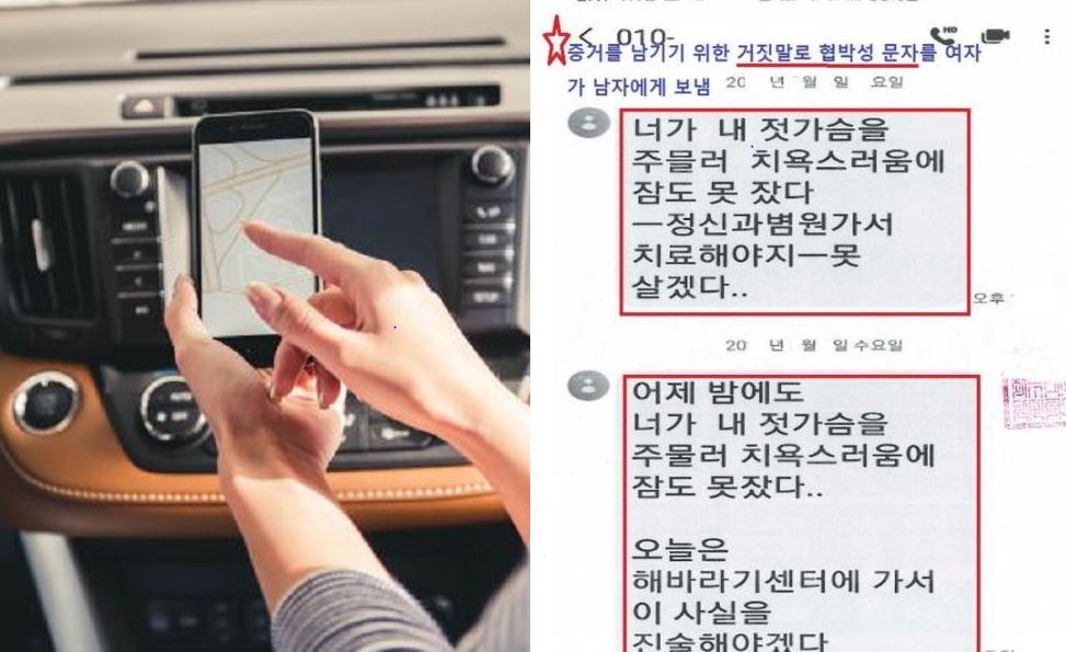 또 A씨는 증거로 활용하기 위해 B씨에게 두 차례 협박성 허위 문자를 보내기도 했다. A씨는 "네가 내 가슴을 주물러 치욕스러움에 잠을 못 잤다. 정신병원 가서 치료해야지"라며 특정 여성 폭력 전문 상담 기관을 지목해 그곳에도 진술하겠다고 했다.