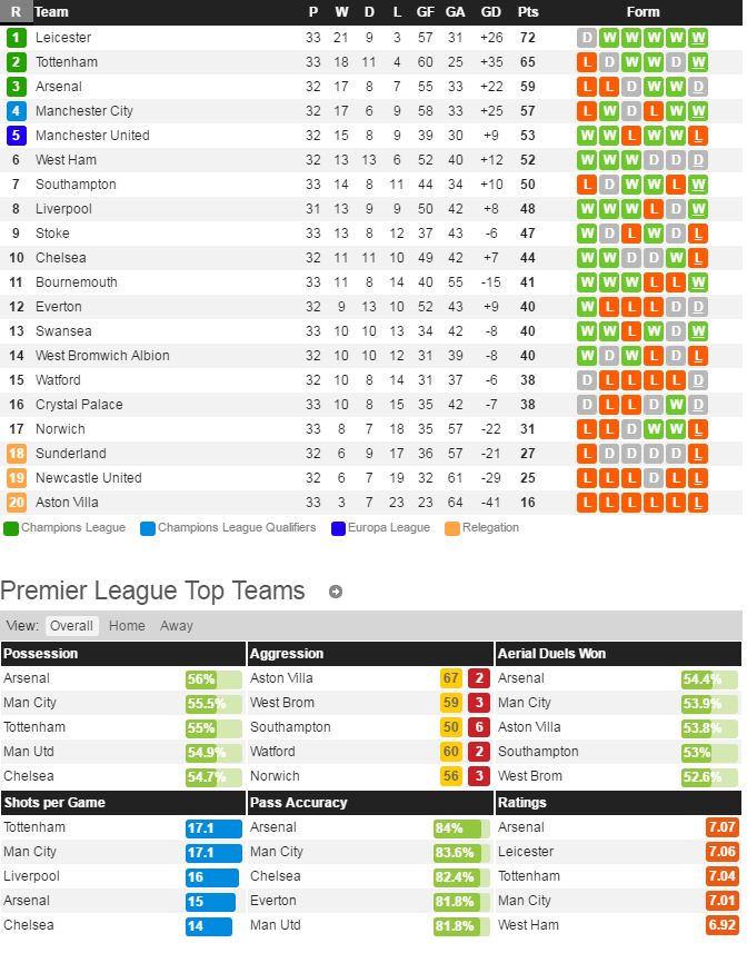맨유는 지난 라운드 토트넘 전에서 0-3 완패를 당하면서 리그 5위에 머물러있다. 거기에 주중 웨스트햄과의 FA 컵 재경기도 포기 할 수 없는 상황이다. 다행히 공격수 루니가 복귀가 가능하다는 소식이 들리고 있기에 큰 힘이 될 것으로 보인다. 애스턴빌라는 지난 라운드 본머스 전에서도 1-2 패배를 당하며 최근 리그 8연패의 부진에 빠져있다. 사실상 선수들의 전의를 상실한 모습을 보여주며 강등이 확정 되었기에 어려운 경기가 될 것이다.