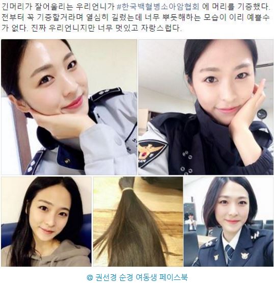 누리꾼들은 권 순경의 사연에 크게 감동받으며 "나도 머리기부를 하고 싶다", "얼굴도 마음도 고운 분" 등의 칭찬 댓글을 남기고 있다.