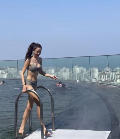 공개된 사진 속 이소연은 비키니 수영복을 입고 야외 수영장에서 수영을 즐기고 있다. 밝게 웃고 있는 그는 글래머러스한 몸매를 자랑해 눈길을 끌었다.