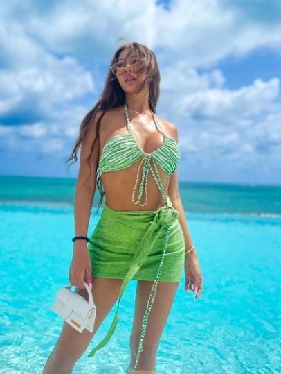 공개된 사진 속 제시는 그린 컬러의 비키니를 입고 바닷가와 맞물린 한 호텔 수영 풀에서 다양한 포즈를 연출하고 있다.