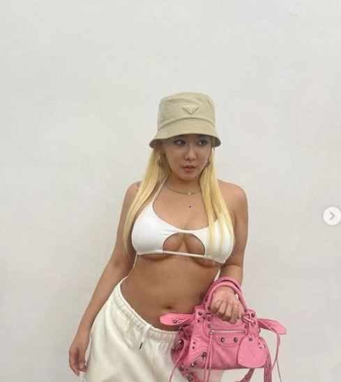래퍼 퀸 와사비가 언더붑 패션을 선보이며 과감한 자태를 뽐냈다.