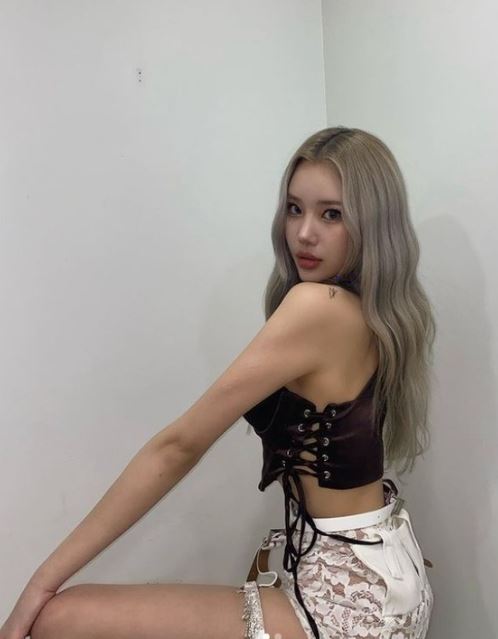 모모랜드 주이가 파격적인 의상으로 시선을 끌었다.