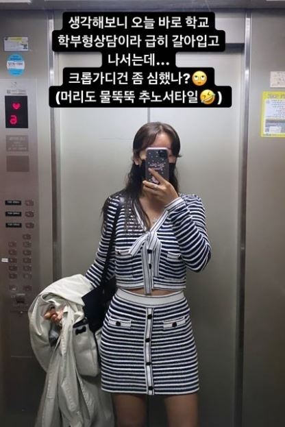 이를 본 누리꾼들은 "학부형 상담에 저런 패션은 좀", "멋진 몸매라 가능한 스타일", "학부형 같지 않은 모습 너무 부러워요", "아이 엄마 맞나요?" 등의 반응을 보였다.