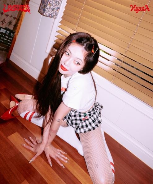 무드 필름에 이어 '체리'라는 키워드를 활용한 이번 티저 이미지 속 현아는 빨간색 립스틱, 구두와 머리 핀, 의상 디테일로 강렬한 매력을 발산했다. 도발적인 포즈와 천진한 표정이 어우러져 현아만의 키치한 분위기가 완성됐다.