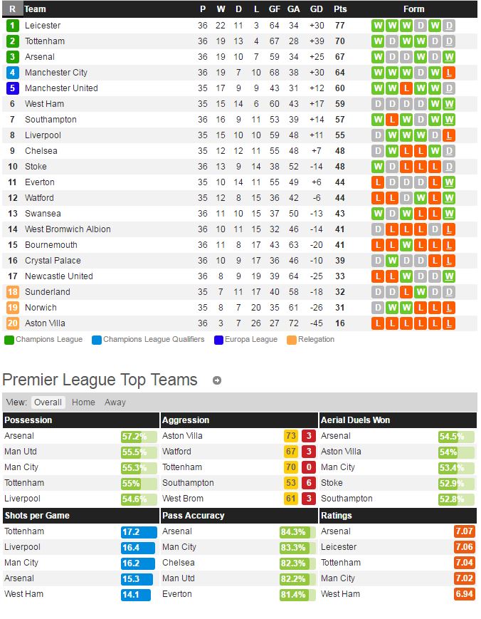 토트넘은 지난 라운드 첼시 전에서 2-2 무승부를 거두고 우승에 실패하였다. 그렇지만 최근 리그 6경기에서 3승 3무를 거두는 등 경기력은 여전히 뛰어나고 알리가 결장 하는 자리에 손흥민이 투입되서 좋은 활약을 보여주었다. 사우스햄턴은 지난 라운드 맨시티 전에서 4-2 대승을 거두고 리그 7위를 유지하고 있다. 특히 공격수 마네는 지난 경기에서 해트트릭을 거두며 올 시즌 10골을 터트리며 롱-펠레와 함께 공격을 이끌고 있다.