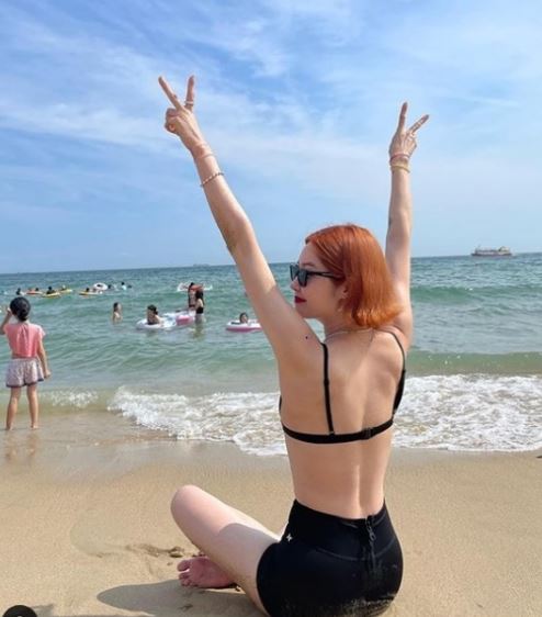 김새롬은 19일 인스타그램에 "나 또 바다, 쨍쨍 익는 오렌지"라며 해수욕장에서 물놀이를 즐기는 모습을 공개했다.