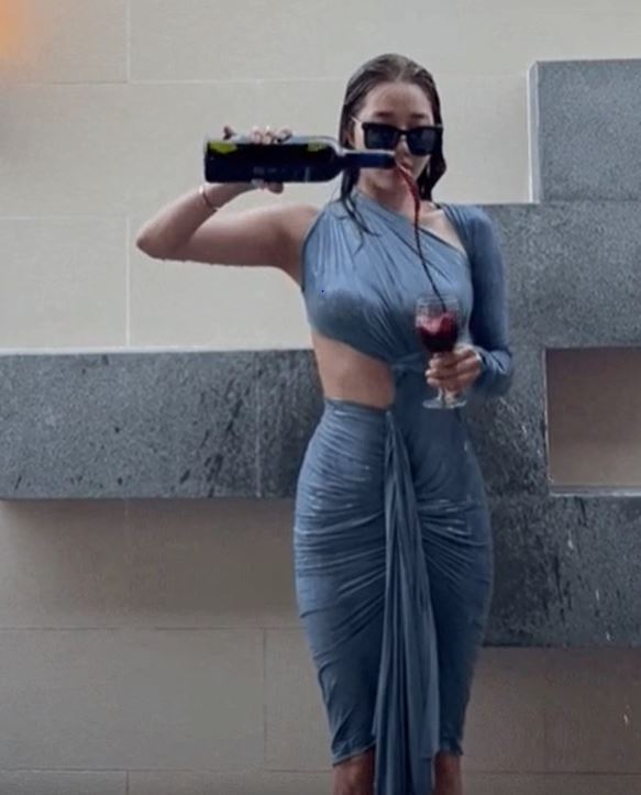 이후 그는 와인을 유리잔에 따른 뒤 갑자기 와인을 병째로 마시기 시작했다. 결국 와인이 입속에서 넘쳤고 온몸을 와인으로 샤워하고 말았다.