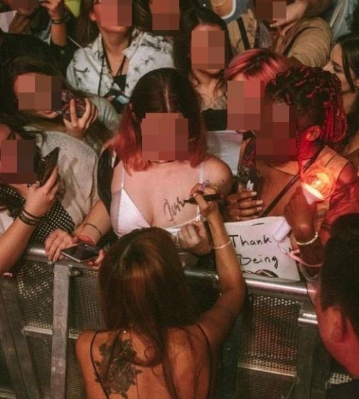 특히 한 팬이 '내 가슴에 사인을 해달라'는 요청을 했고, 뒤이어 일부 팬들이 가슴에 사인을 받으며 즐거워 하는 모습을 보이기도 했다.