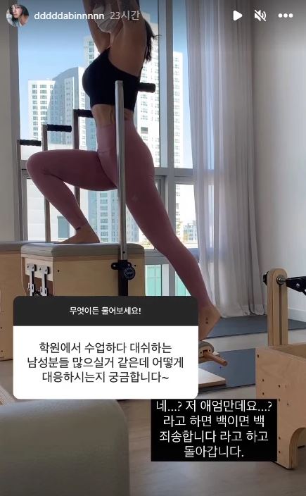 필라테스 강사 겸 방송인 전다빈은 최근 인스타그램 스토리를 통해 팬들과 '무엇이든 물어보세요'를 진행했다.