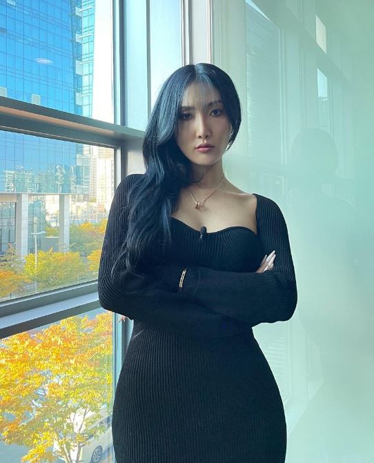 최근 마마무 공식 인스타그램에는 화사의 사진 두 장이 게재됐다. 여기에는 넥라인이 과감하게 파인 블랙 니트 원피스를 입은 화사의 모습이 담겼다.