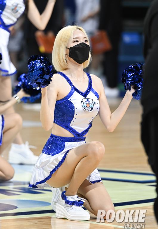 아산에 위치한 이순신빙상장체육관에서 ‘신한은행 SL 2022~2023 여자프로농구’ 아산 우리은행과 부천 하나원큐의 경기가 열렸다. 서현숙 치어리더가 우리은행을 응원하고 있다.