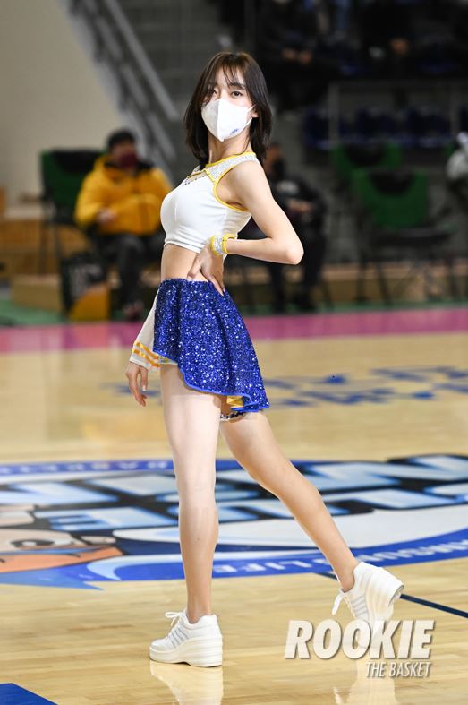 용인실내체육관에서 ‘신한은행 SL 2022~2023 여자프로농구’ 용인 삼성생명과 부산 BNK썸의 경기가 열렸다. 마서연 치어리더가 삼성생명을 응원하고 있다.