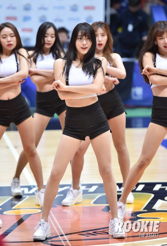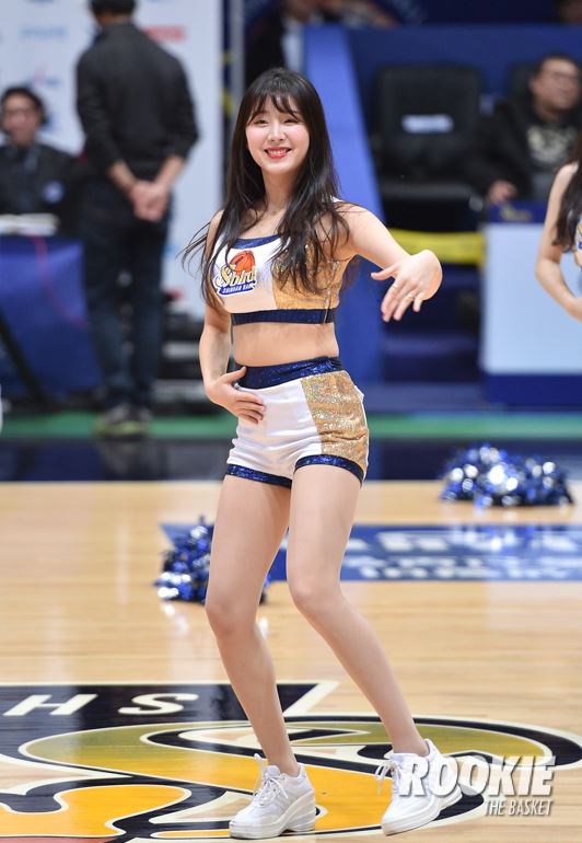 도원체육관에서 ’여자 프로농구' 인천 신한은행과 OK저축은행의 경기가 열렸다. 안지현 치어리더가 신한은행을 응원하고 있다.