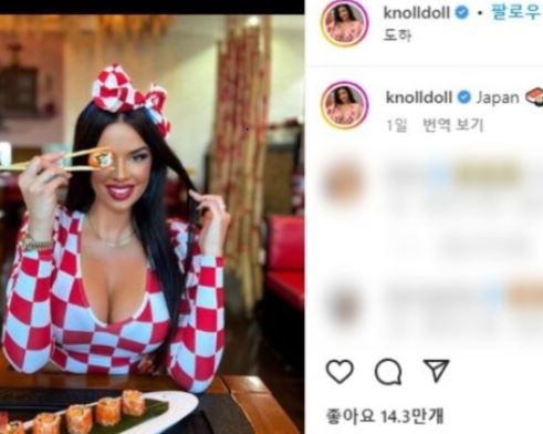 놀은 지난 6일 자신의 인스타그램에 초밥을 먹는 짧은 영상을 올렸다. 그러면서 “오늘 메뉴가 초밥 밖에 없다”는 글을 올렸는데 이 게시물은 크로아티가 16강전에서 일본을 승부차기 끝에 승리한 후 작성됐다.