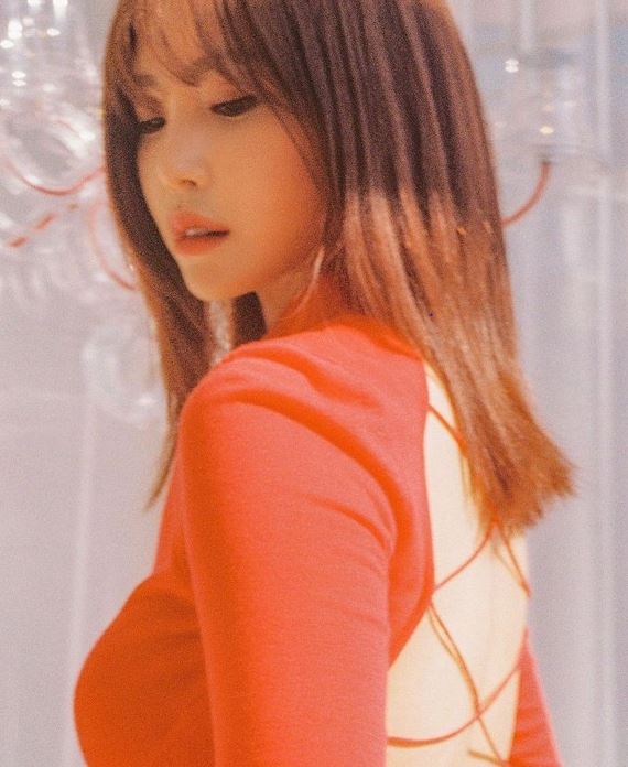 여기에는 정열적인 레드 드레스를 입고 포즈를 취하고 있는 전효성의 모습이 담겼다. 등을 교차하는 끈이 더욱 아찔한 매력을 불러일으키고 있다.