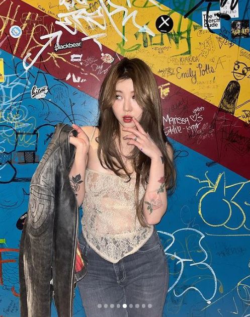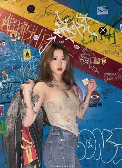 특히 속이 그대로 비치는 아찔한 시스루로 드러난 백예린의 글래머 몸매가 돋보인다. 최근 이슈가 됐던 용 문신도 그대로 드러났다.
