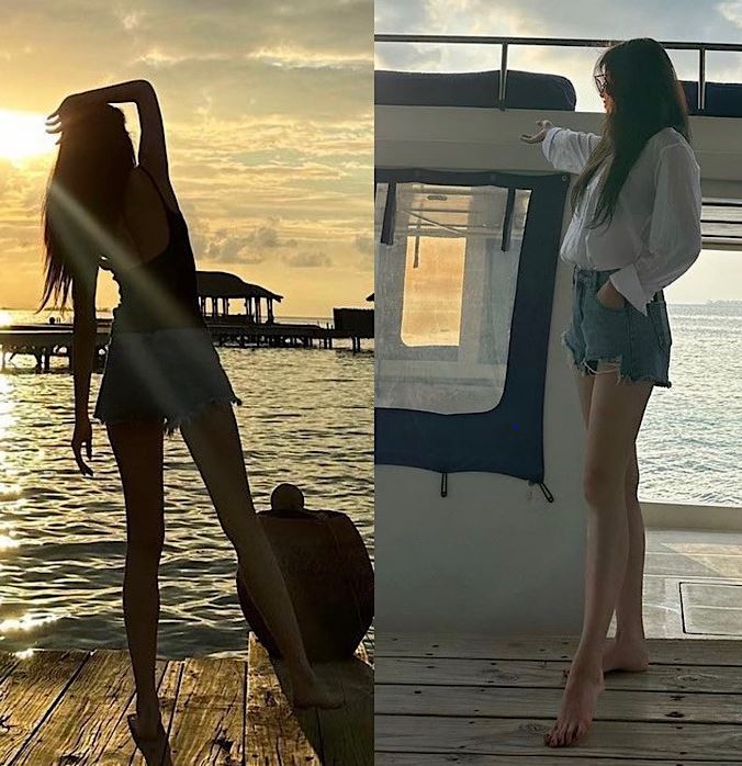 공개된 사진에는 몰디브 해안을 배경으로 다양한 포즈를 취하고 있는 지연이 담겨 있다. 해먹 위에서 시간을 보내는 등 행복한 신혼여행을 즐기고 있는 모습이다.