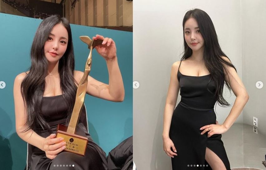여기에는 ‘KBS 연예대상’에 참석한 유정이 블랙 드레스를 입고 섹시하면서도 고혹미 넘치는 자태를 뽐내고 있다. 청순한 미모와 늘씬한 슬렌더 자태가 돋보인다. 트로피를 들고 미소를 짓고 있는 모습 역시 인형 같은 비주얼로 눈길을 사로잡는다.