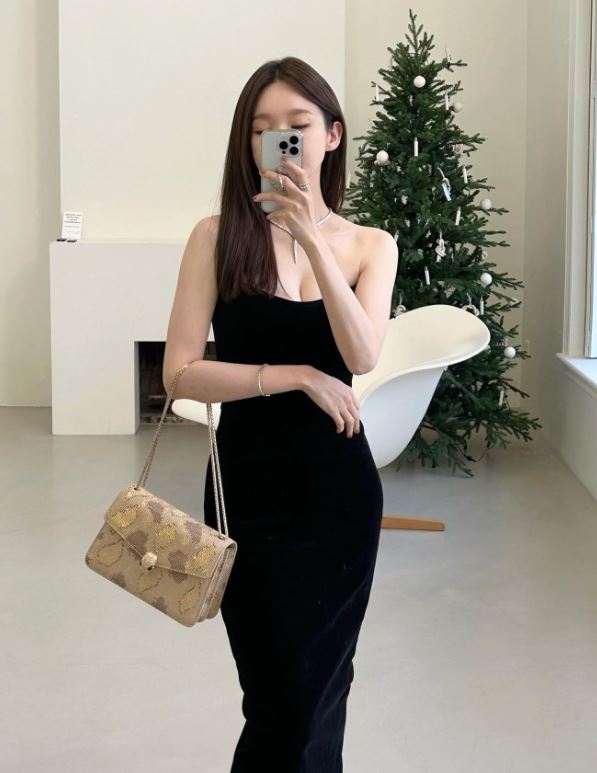 첫 번째 사진 속 강민경은 모던한 브라운 컬러 슈트에 화려한 골드 핸드백으로 포인트를 줘 완벽한 슈트핏을 선보였다. 두 번째 사진에서는 팬들이 골라준 미니멀한 디자인의 튜브톱 블랙 드레스를 입고 고혹적인 분위기를 자아냈으며, 세 번째 사진에서는 핑크 드레스로 상큼하면서도 러블리한 매력을 발산했다.