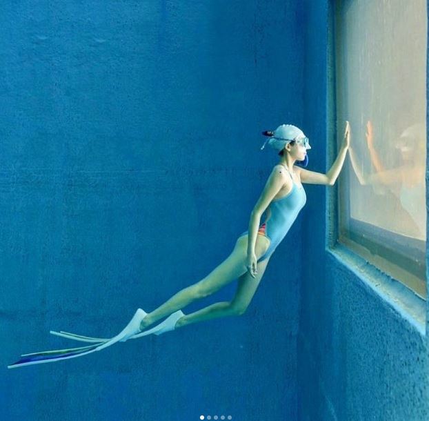 여기에서 강지영은 깊은 물 속에서 프리다이빙 중인 모습이다. 그는 군살 하나 없는 완벽한 수영복 몸매를 과시하며 인어공주 같은 자태를 뽐내 보는 이들의 감탄을 자아낸다. 이어 공개한 영상에서도 강지영은 빼어난 프리다이빙 실력으로 이목을 집중시켰다.