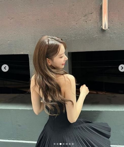 또 다른 사진 속에는 그녀의 뒤태가 포착됐다. 매끈한 어깨라인과 뽀얀 피부 등으로 사쿠라는 치명적인 매력을 발산했다.
