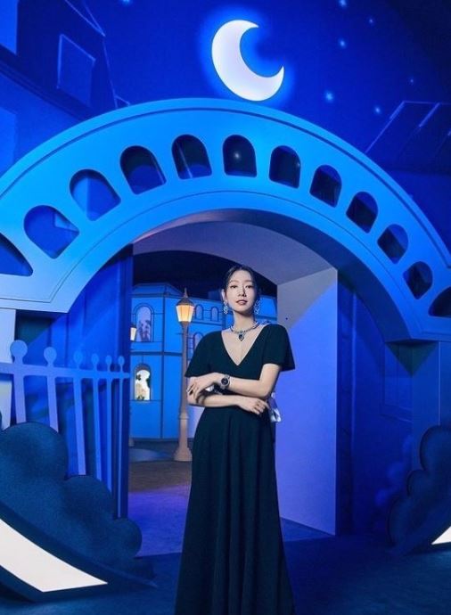 여기서 그녀는 넥라인이 드러난 드레스를 입고 포즈를 취했다. '여신미모' 수식어가 어울리는 단아하고 고혹적인 매력이 돋보이는 스타일이다. 여기에 에 화려한 주얼리로 포인트를 줬다.