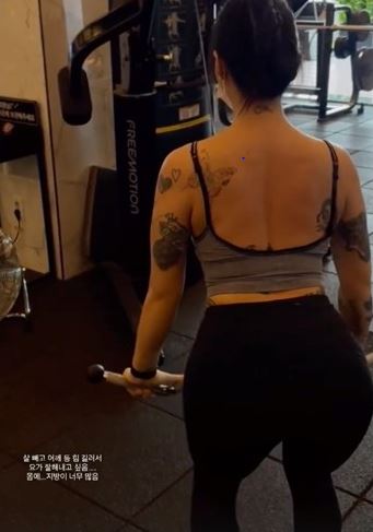 전다빈은 헬스장에서 운동에 집중하고 있는 모습. 갈라진 등 근육과 섹시한 몸매가 이목을 끌었다.
