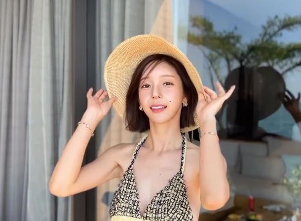 야옹이 작가는 태국 파타야로 여행을 떠났다. 늘씬한 몸매가 드러나는 의상을 입고 밀짚모자를 쓰며 해맑은 미소를 짓고 있다.