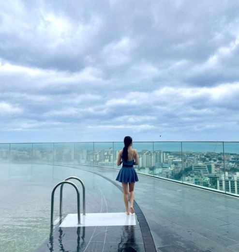 여기에는 박주현이 제주도의 5성급 호텔에서 휴가를 즐기는 모습이 담겼다. 그는 야외 수영장에서 원피스형 수영복과 비키니를 입고, 빼어난 미모는 물론 볼륨감 넘치는 몸매도 자연스럽게 뽐냈다.