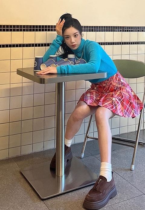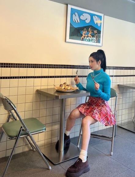 권은비의 자그마한 얼굴과 커다란 눈망울 등 인형 뺨치는 미모는 박수를 부른다. 다리를 쭉 뻗은 채 음료를 마시는 사진에는 권은비의 귀여운 매력이 고스란히 담겨있다.