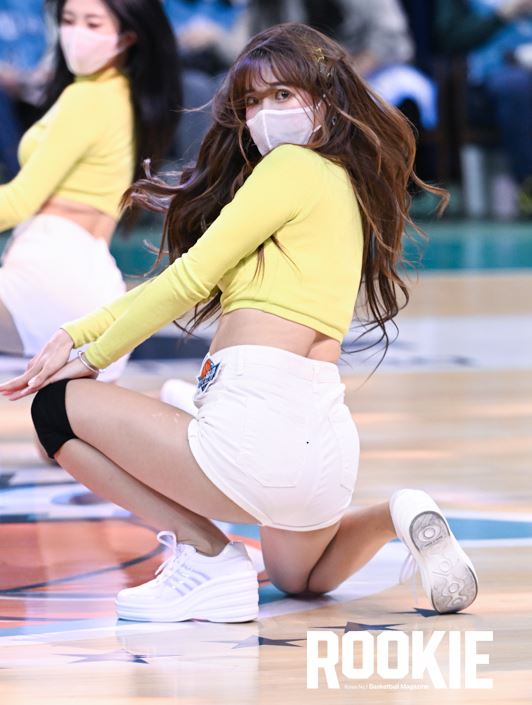 부천실내체육관에서 ‘신한은행 SOL 2022~2023 여자프로농구’ 부천 하나원큐와 용인 삼성생명의 경기가 열렸다. 김한나 치어리더가 하나원큐를 응원하고 있다.