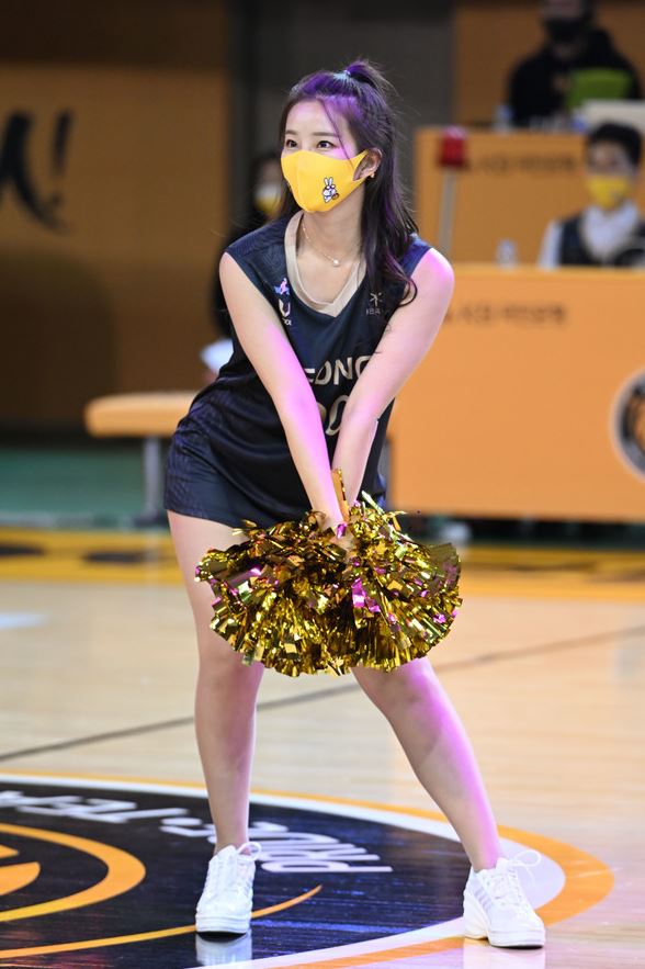 청주실내체육관에서 ‘신한은행 SOL 2022~2023 여자프로농구’ 청주 KB스타즈와 부산 BNK썸의 경기가 열렸다. 김진아 치어리더가 KB스타즈를 응원하고 있다.