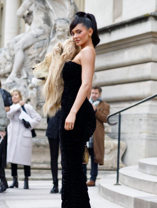여기에는 카일리 제너가 패션 브랜드 스키아파렐리의 쇼에 참석한 모습이 담겼다. 그는 오프숄더 형태의 검은색 드레스를 입고 늘씬한 몸매를 드러낸 모습으로, 특히 한쪽 어깨에는 실제와 같은 사자 머리를 메고 와 놀라움을 자아냈다.