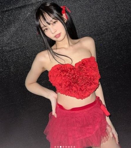 여기서 제니는 하트 모양의 빨간색 프릴이 돋보이는 브라톱을 입고 특유의 직각 어깨와 늘씬한 허리를 자랑하고 있는 모습이다. 그는 다양한 표정과 포즈로 섹시하면서도 고혹적인 매력을 뽐내 눈길을 모은다.