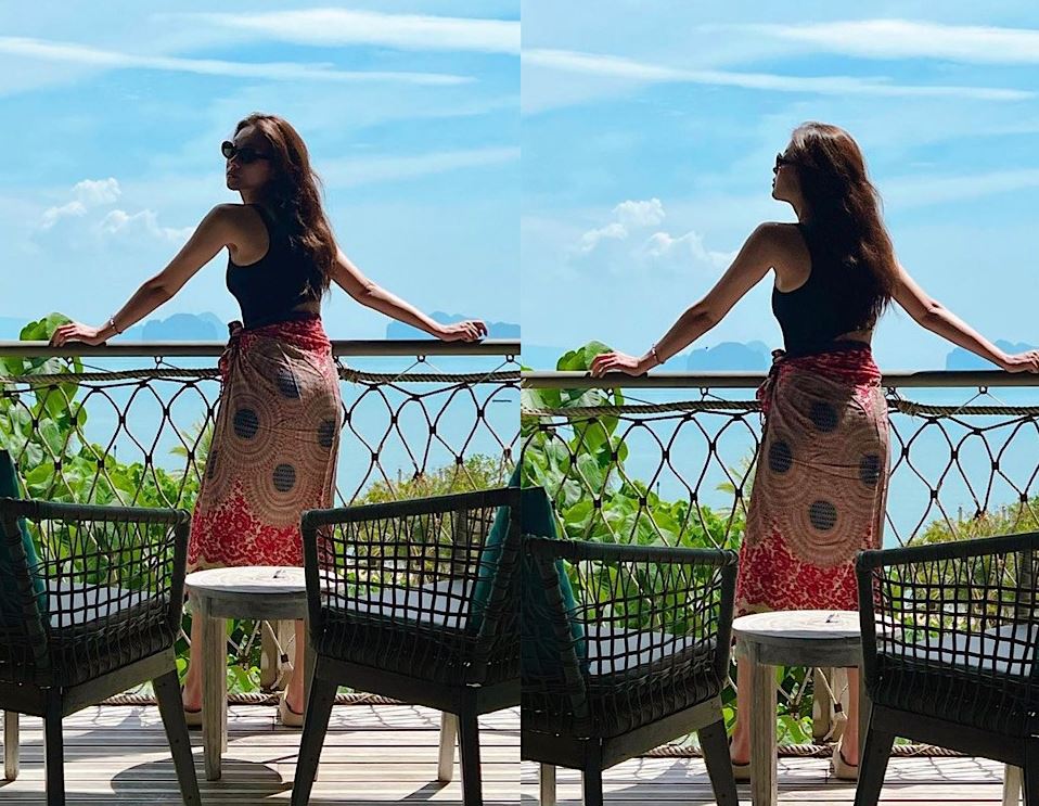 여기에는 푸켓 여행 중 숙소에서 여유로운 휴가를 즐기고 있는 오연서의 모습이 담겼다. 청량한 하늘 아래, 선글라스를 쓰고 물놀이 후 휴식을 취하고 있다.