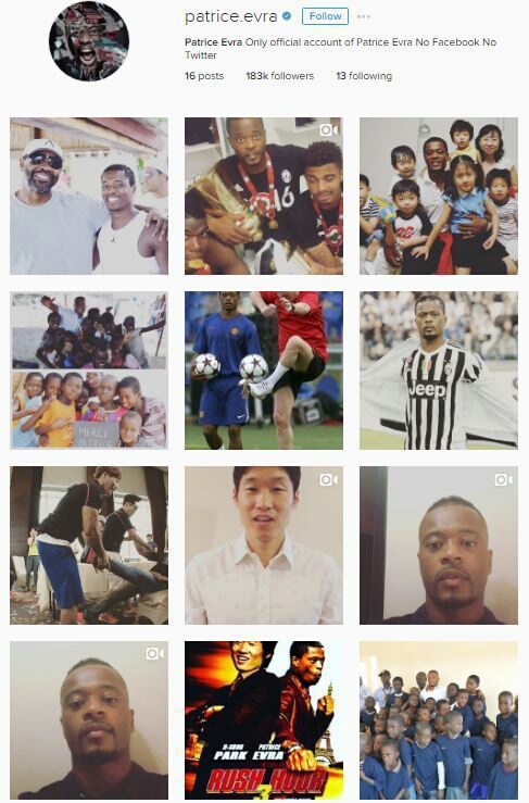 "안녕하세요 박지성입니다. 이 계정은 파트리스 에브라의 공식 인스타그램입니다. 감사합니다"