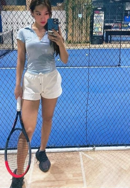 김희정은 최근 인스타그램에 “테니스 치자!”이라는 글과 함께 여러 장의 사진을 게재했다. 여기에는 김희정이 다양한 테니스 룩을 소화한 모습이 담겨 있다.